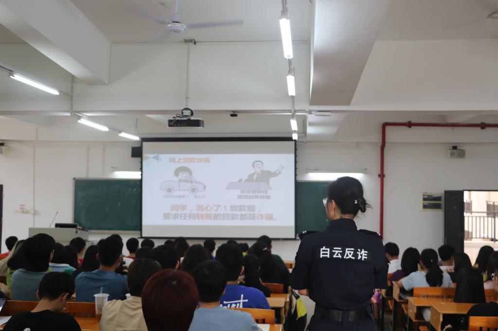 活动中,派出所民警与老师们以大学生喜闻乐见的方式,通过专题讲座、视频案例分析、现场交流互动、角色扮演等形式,为师生们深入剖析身边发生的刷单兼职、淘宝退费、冒充公检法等案例,并提出应对方法和措施。