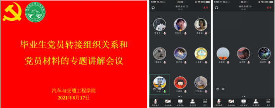 为了帮助毕业生党员了解党组织关系转接和党员材料的问题,同时响应学校疫情防控需要,做到不扎堆、不聚集,我院于6月17日组织毕业生党员线上召开2021届毕业生党员转接组织关系和党员材料的专题讲解会议。