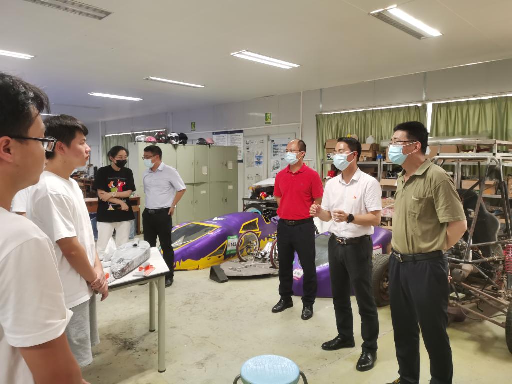 6月25日下午,我院党总支书记蔡向雄、院长徐伟、党总支副书记何伟强、副院长曾祥坤以及指导老师王思卓等一行前往学生科创工作室看望学生并指导广师之翼节能车队工作。