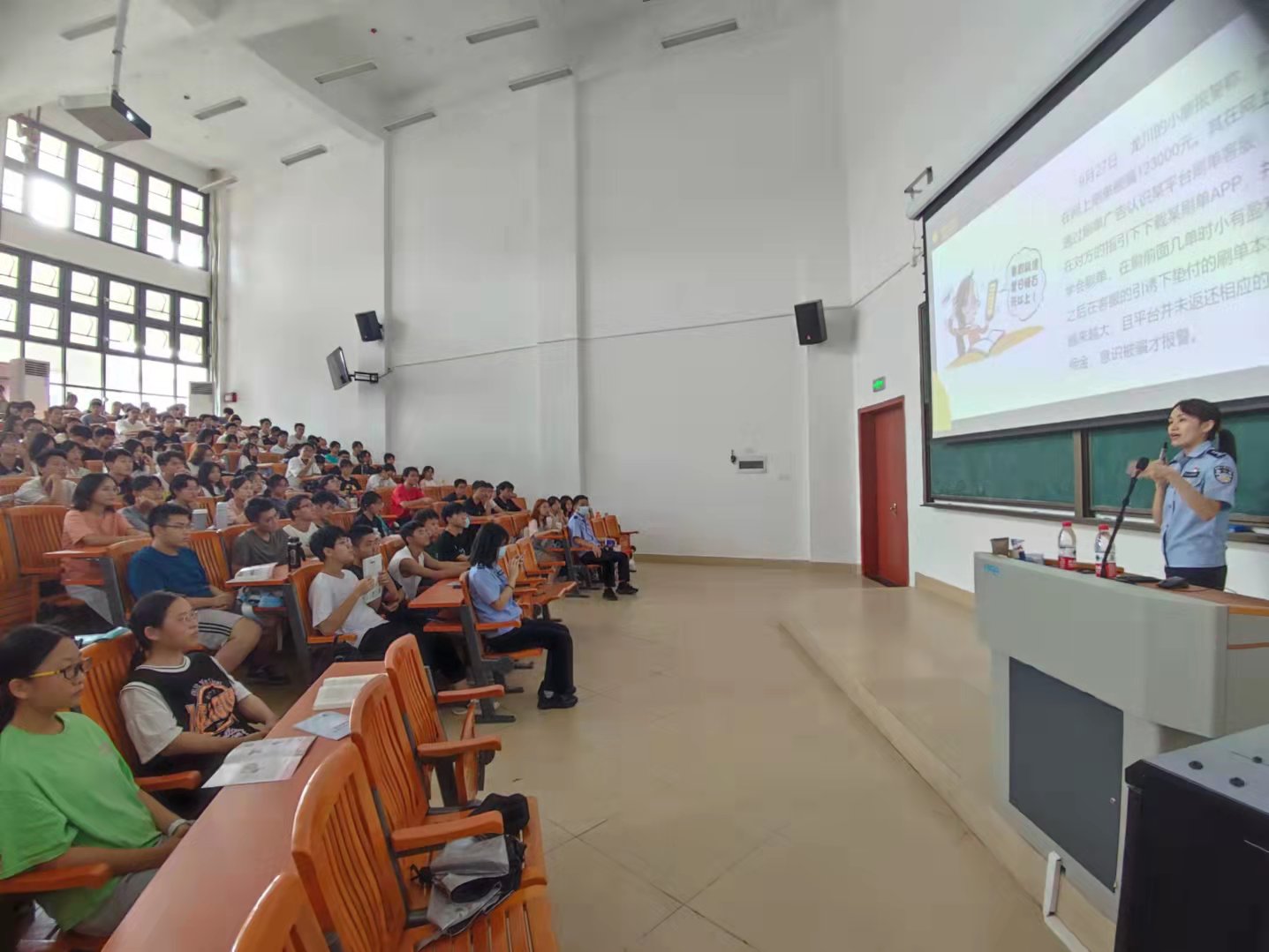 活动中,派出所民警以大学生喜闻乐见的方式,通过专题讲座、视频案例分析、现场交流互动、角色扮演等形式,为师生们深入剖析身边发生的刷单兼职、淘宝退费、冒充公检法等案例,并提出应对方法和措施。