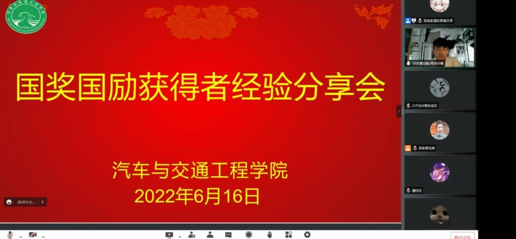 为更好地激励学生成长成才,我院于2022年6月16日举办了国奖国励获得者线上经验分享会。学院相关助学负责人参会并讲话。