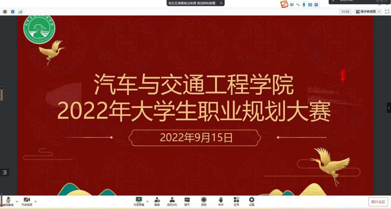为提高我院大学生职业素养与能力,促进毕业生更加充分与更高质量就业创业,9月15日晚,我院通过线上方式举办2022年大学生职业规划大赛。学校就业办有关老师、学院领导班子成员、辅导员和参赛选手及观众300余人参与了本次比赛。