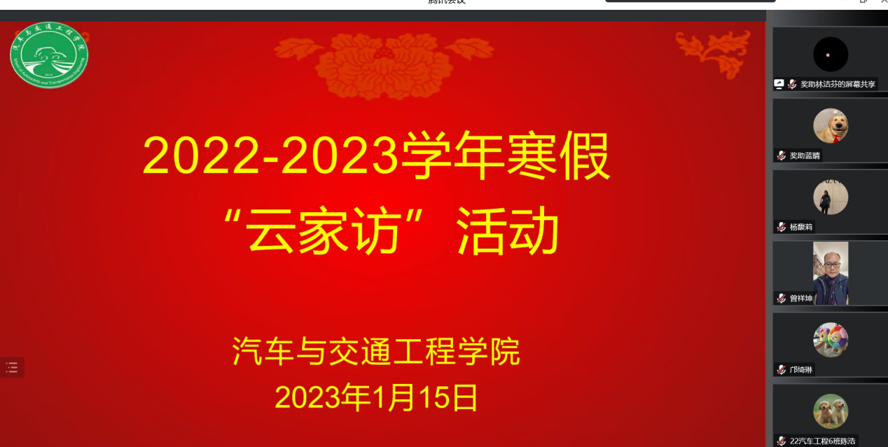 为全面贯彻立德树人根本任务,进一步提升资助育人质量,深入了解家庭经济困难学生的生活及学习情况。1月15日,我院于线上举办了2022-2023学年寒假“云家访”活动。学院党委书记蔡向雄、学院党委副书记邝绮琳、学院副院长曾祥坤、全体辅导员、班主任及学生代表参与本次云家访活动。