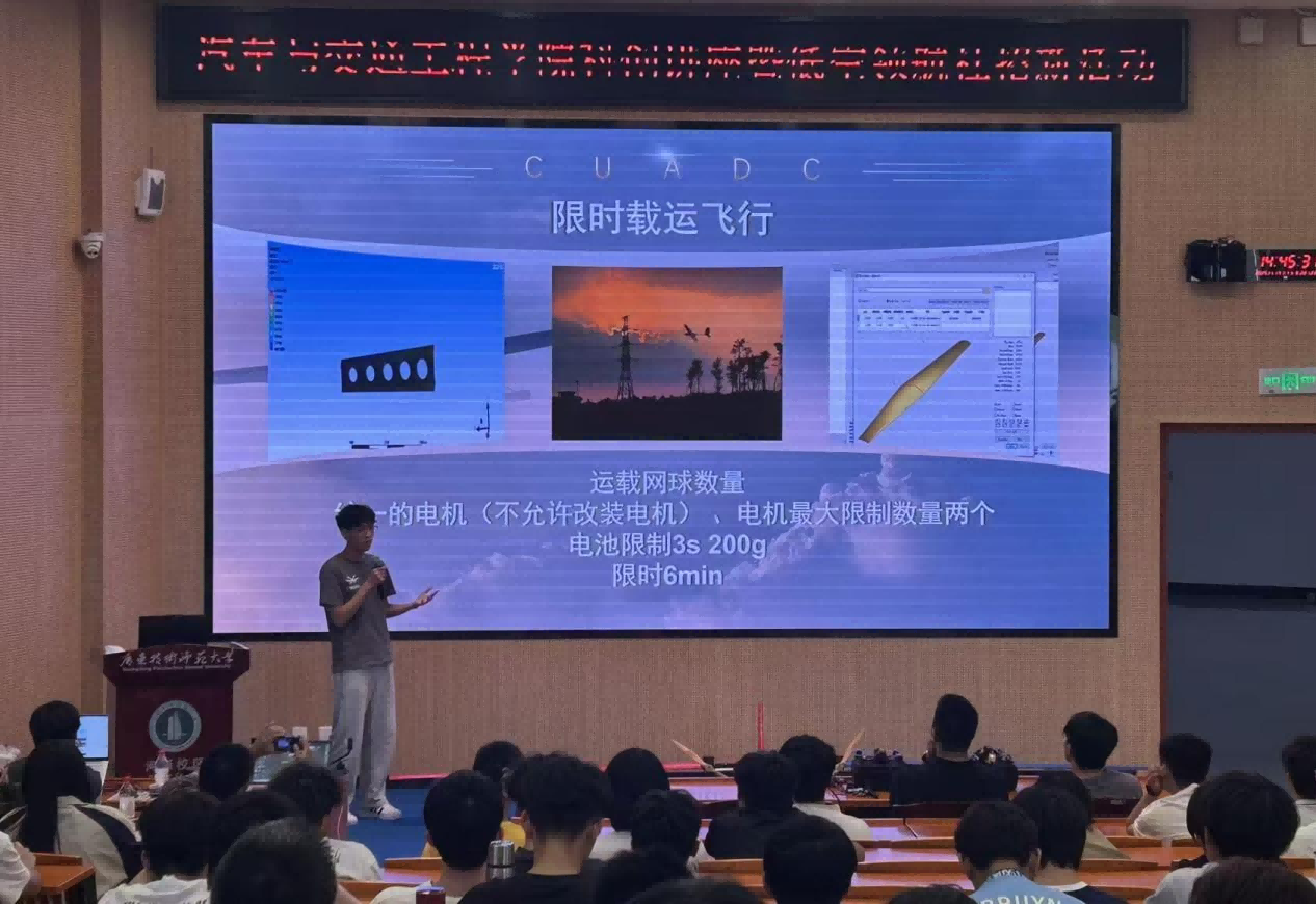 以“逐梦低空,领航未来”为主题,讲座中简述了目前低空经济行业特别是河源市的现状与发展,社团核心成员介绍了社团的基本构成,广师大无人机队和航测队等的工作内容,结合CUADC系列赛事、“达北杯”系列赛事等竞赛经验分享,科普有关飞行器设计、制造和运用的知识,包括空气动力学、飞机的气动性能分析、各类建模工具和仿真分析工具的运用、飞控等电子器件的调试与整合、航测的基本操作和运用等。