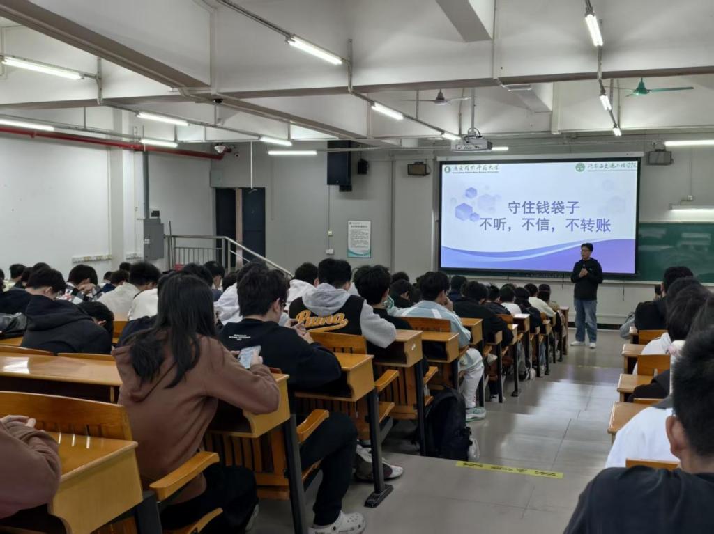 为切实提高学生防范电信诈骗的意识和能力,筑牢校园安全防线,2025年12月16日下午,汽车与交通工程学院在白云校区面向2023级和2024级全体学生举办了反诈安全教育主题讲座。本次讲座由2024级辅导员赵猛主讲。