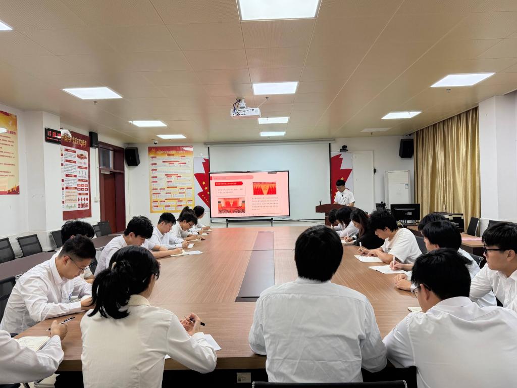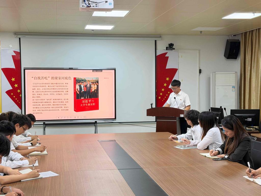 学院团委副书记黄泓皓带领同学们逐字逐句研读习近平总书记致全国学联二十八大的重要贺信和党中央致词,深刻领会习近平总书记对青年“坚定理想信念,厚植家国情怀,勇担历史使命”的殷切期望。围绕党的二十届四中全会擘画的“十五五”发展蓝图,重点解读全会关于青年成长、人才强国的部署要求,明确青年在中国式现代化建设中的责任坐标。在《习近平与大学生朋友们(第二卷)》学习环节,通过分享书中习近平总书记与青年交往的鲜活故事,引导学生干部体悟“把小我融入大我”的成长之道。