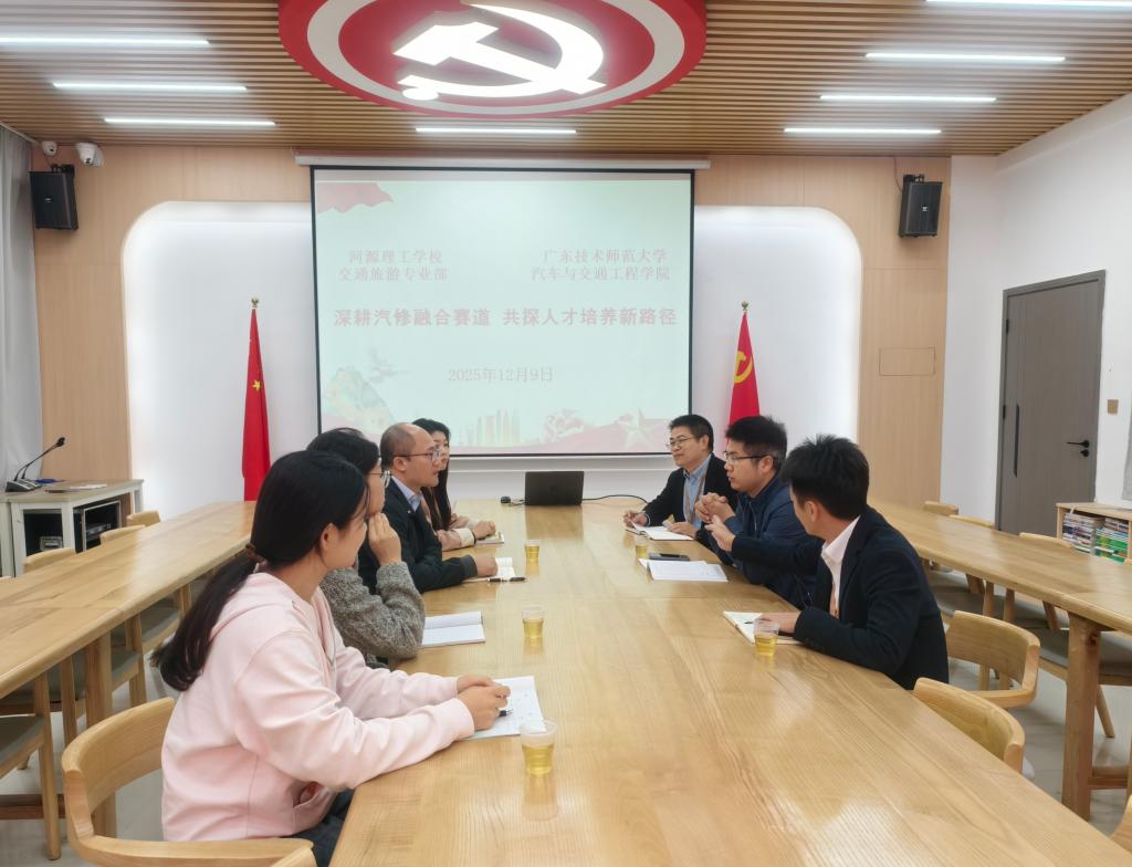 座谈会上,河源理工学校学生科副科长黄成及交通旅游部相关负责人对我院到访表示热烈欢迎,并介绍了该校交通旅游部专业建设情况和我院师范生实习等相关工作。随后,双方聚焦汽修专业人才培养的核心需求,围绕课程体系建设、实训资源共享、职教师资共建、招生就业联动等议题展开深入探讨。